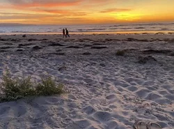 A beautiful long beach, gentle waves at low tide, clean, dog friendly & a great beach to sit & watch the sunset. Unfortunately cars are allowed to drive on the beach and sometimes these vehicles are travelling too fast.